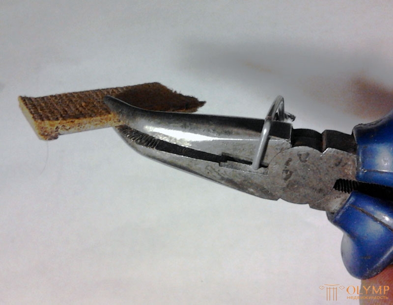 Having established the resulting mechanism between the tiles, the upper ends of the wire are twisted into a spiral shape. Pre-under the wire, you must insert pieces of hardboard. Thus, there is a fixation of materials. After one hundred percent dry adhesive can remove clips. The protruding parts of the loop are cut by nippers.