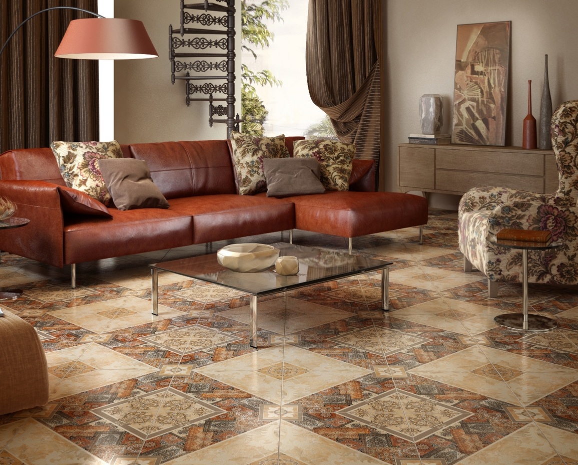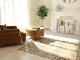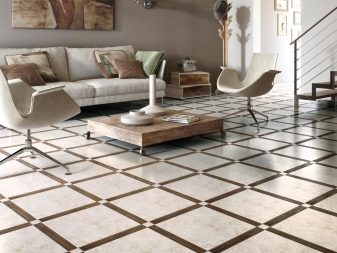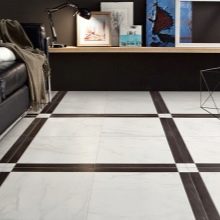 Material size 60 x 60 cm is classified as non-standardHowever, when facing the floor in large rooms, it is very appropriate. Externally, the material of such dimensions looks attractive, especially if it has a rectified edge. After completion of the work, such a floor is a solid canvas, the seams are visually missing, the interior looks solid and unusual.
