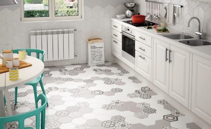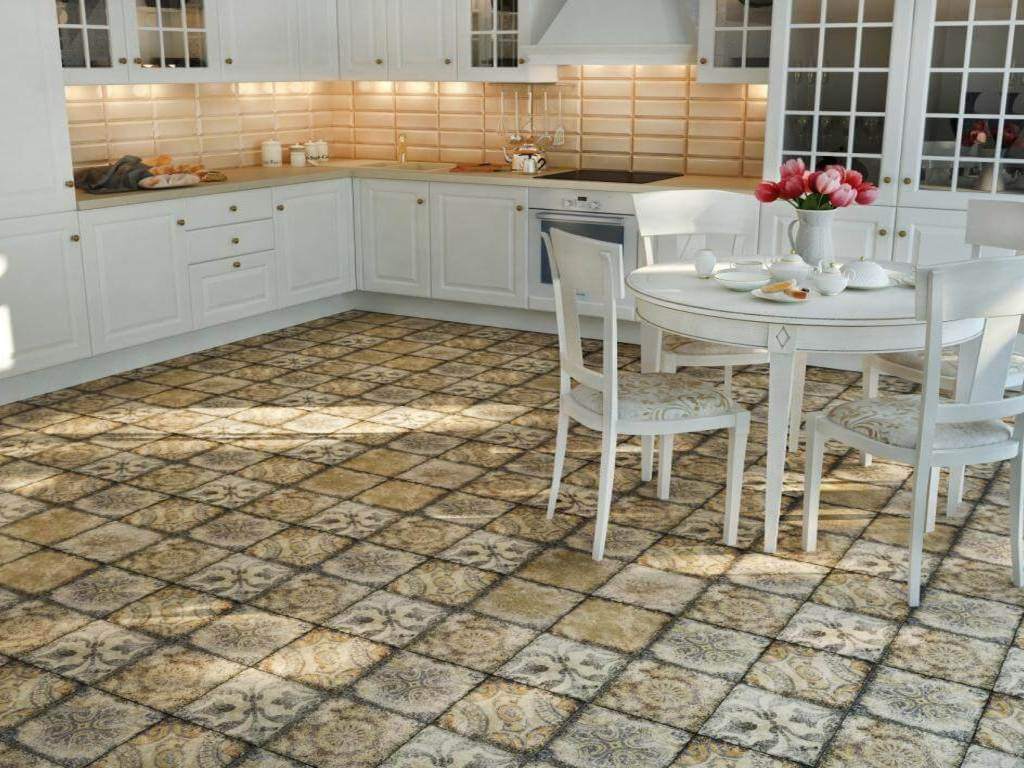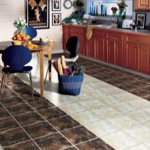 - Material of a small format on the floor visually reduces the floor space. Another drawback of this type of tile is a large number of joints, which does not contribute to the strength of the lining, especially in rooms with high humidity. If we talk about spacious kitchens (more than 16 square meters), then facing with small tiles will make such a room more comfortable.