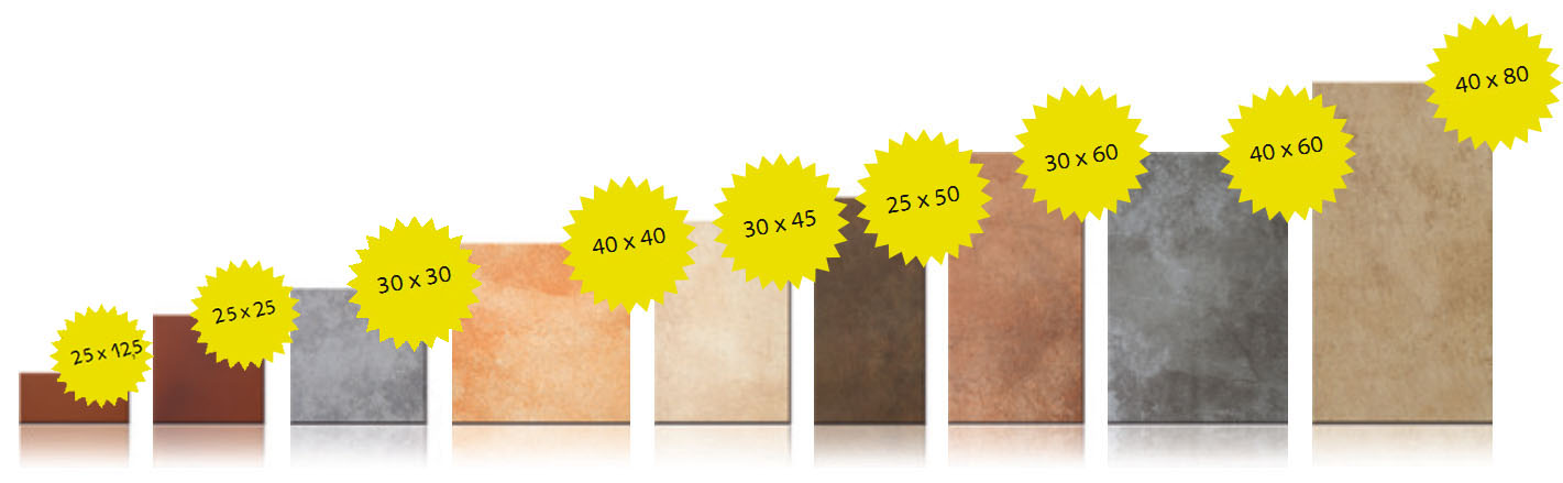 The ceramic granite makes it possible to create tiles of non-standard sizes: