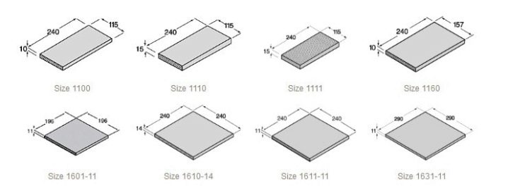 - Tile size is also a thickness that varies from 6 to 11 mm.