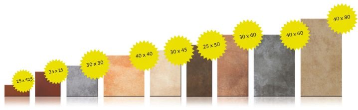 In the production of multi-format tiles, there is a basic principle of adherence to the multiplicity of sizes, which greatly facilitates the work. When selling material in the kit, as a rule, there are tiles of small sizes.
