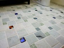 You can lay out the floor the same monochromatic tile or consider more interesting options. For small premises it is recommended to lay the floor with one-color glossy light tiles: this way you can visually expand the space. If you have a spacious bathroom, living room, kitchen or hallway, you can think of more interesting design options. For example, you can combine such a finish with contrasting inserts, framed borders.