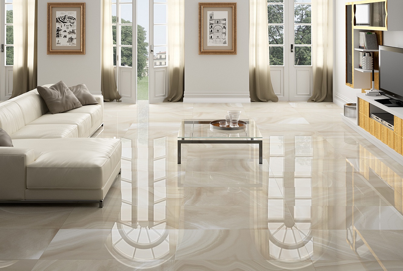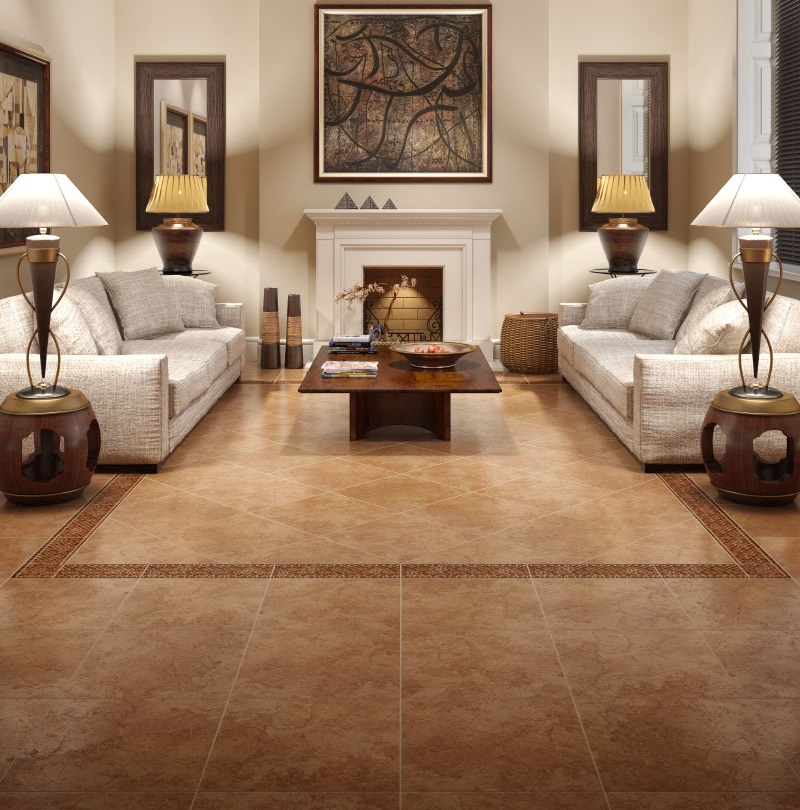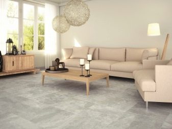Models in warm beige tones are ideal for almost any room.Especially often it is used in the finishing of the hallway and hall. Restrained warm shades allow you to create the necessary comfort in the house, while they look universally, fit any design. Preferring cold tones, it is worth considering: if the windows of the room face the north side, this background of the floor can make the interior dull. If you want to choose a cold shade (for example, sand), it is worth considering a nuance: for a sophisticated look, an abundance of details in the interior of the room is unacceptable. It harmoniously looks in a bright room, combined with bright colors of the color palette in the form of decor, furniture upholstery, curtain textiles.