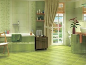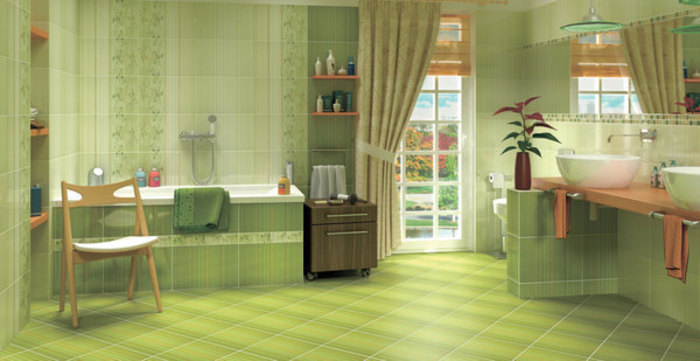 Blue and greenish tones are more commonly used in bathrooms. It is appropriate that they will look in the living room, hallway, in the kitchen. They should not be combined with bright red or orange contrasts, but you can combine such a tile with a counterpart of beige color, which is a soft contrast.