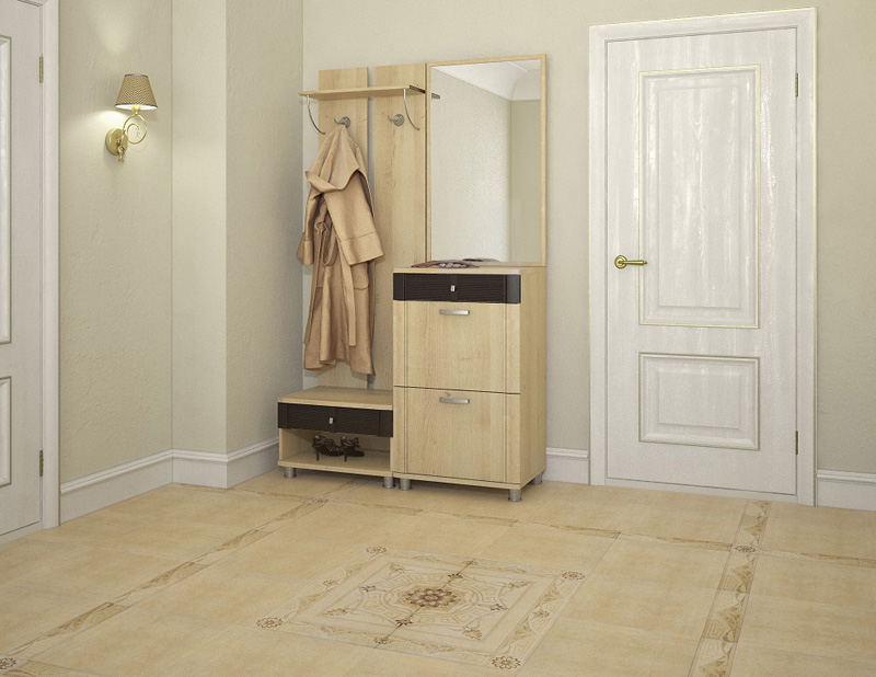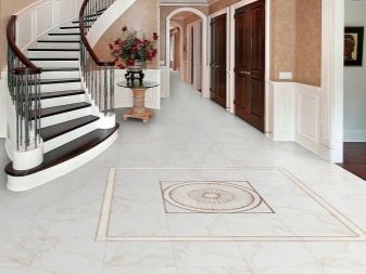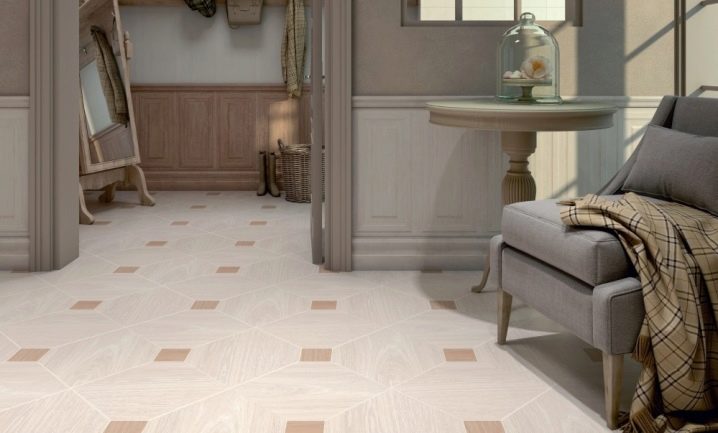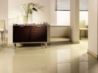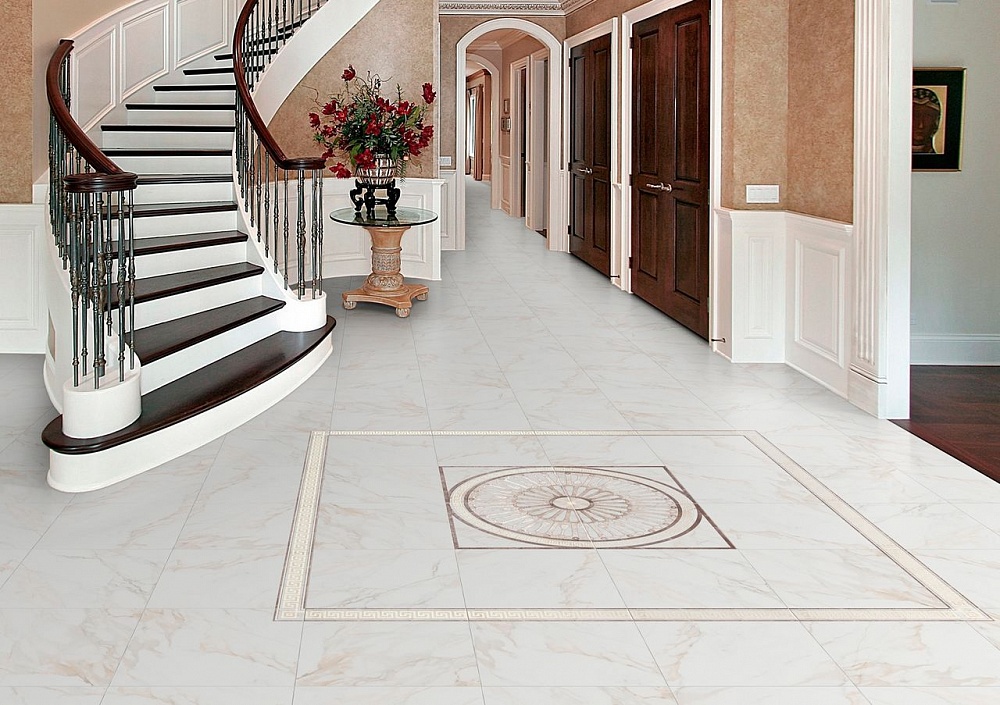 Often with such tiles decorate the floor of the hallway. Light floor in the hallway makes the space visually more spacious. It will be combined with almost any furniture and wall color. More often for the hallway pick up the tile with a matte texture of the surface.