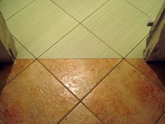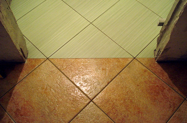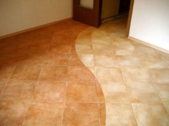 With the help of a tile of several colors you can divide the room into several zones. The easiest option is to choose two different colors of tiles and lay out half of the room in one color, half in another.If you have a bright modern design, you can choose a contrasting color. For more conservative projects it is worth choosing, for example, light brown with terracotta or beige with yellow.