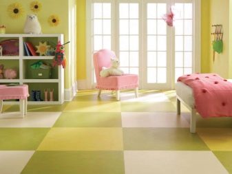 Bright floor tiles look great in any interior. Today, this coating is used along with parquet, laminate and linoleum. With this tile you can achieve interesting color combinations and patterns.