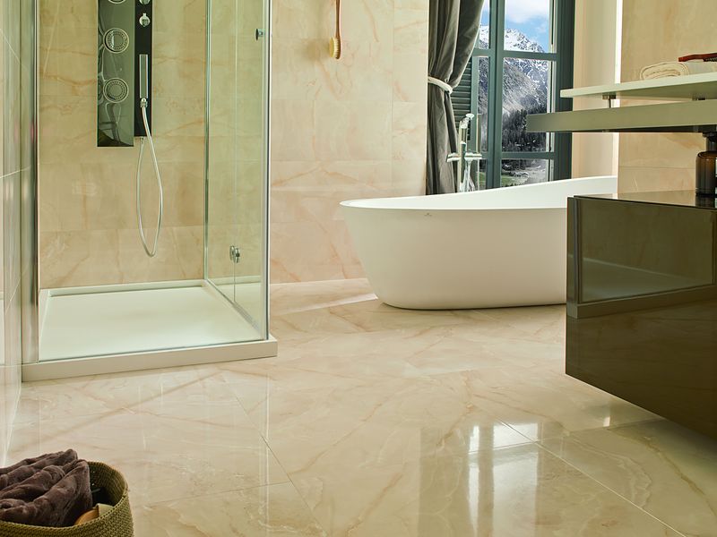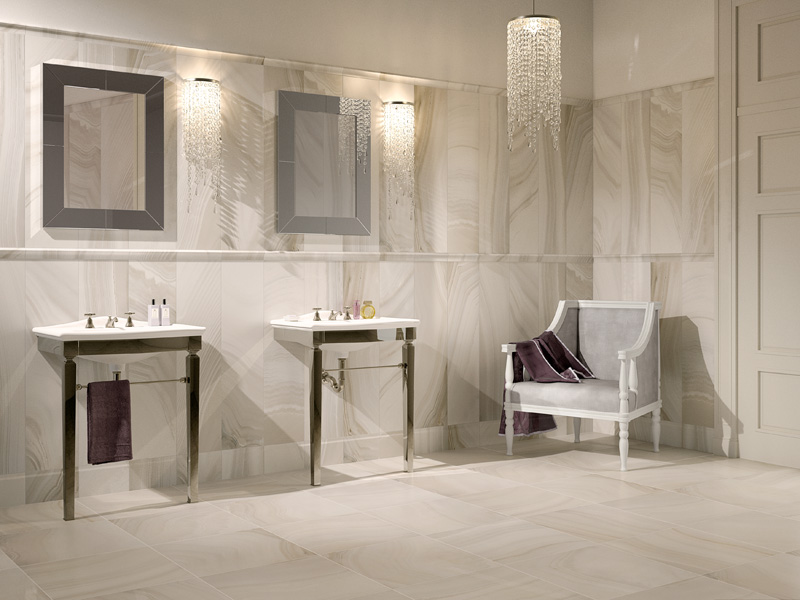 Since the use of white tiles for flooring is impractical, tiles of a milky and ivory color are often chosen for lining. It is important to take into account: the finishing of such tiles should be performed as accurately as possible. All flaws in the installation and uneven floors with milky or white-gray tiles will be noticeable.