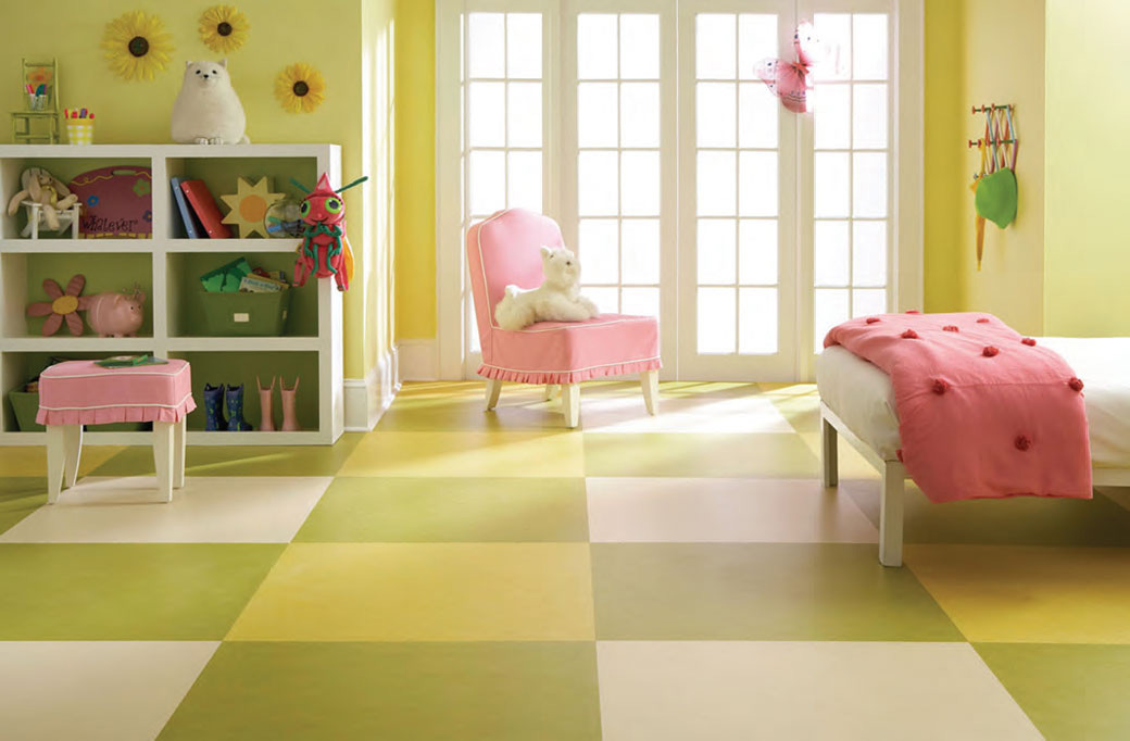 Pastel pink shades are perfect for flooring classic interiors, modern styles and Provence. Shades can be very different. It looks interesting combination of several pastel colors (for example, light crimson, lilac, pale pink). You can make a smooth transition from light tone to dark color: this design will be a highlight of the interior, will allow you to unobtrusively divide the space into separate functional areas.