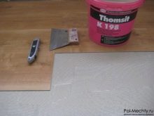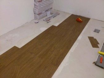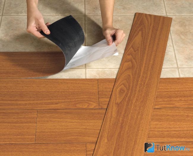- Tile on glue. There is a glue specially made for vinyl tiles. Laying it is easy - glue is applied to the inner side of each element and is laid on the floor in the most convenient way. It is not recommended to glue the coating in the rooms of frequent stay, as glue fumes can be harmful to health.
