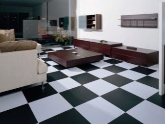 Like ceramic tiles, PVC tiles can be laid in different ways depending on the type of substrate. The main thing - to lay tile in straight rows. It is suitable for covering both wooden and concrete floors.