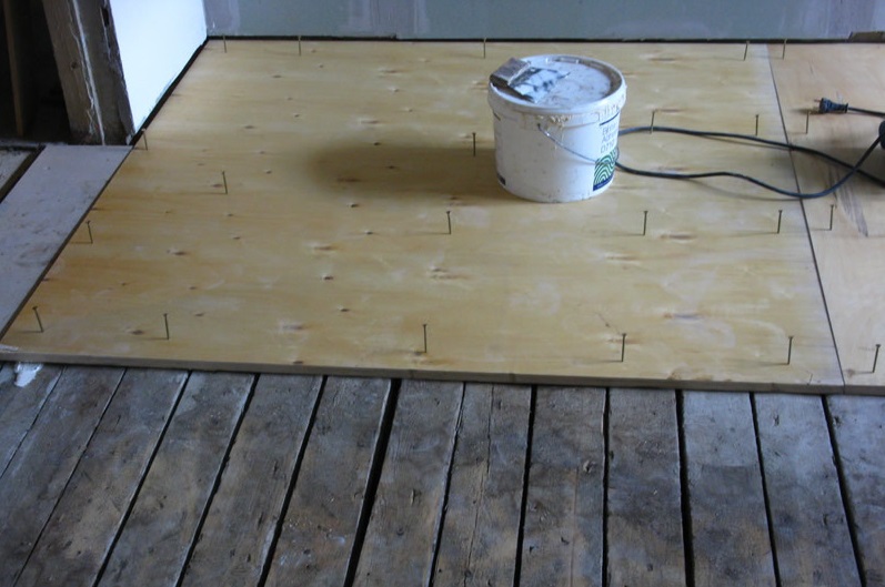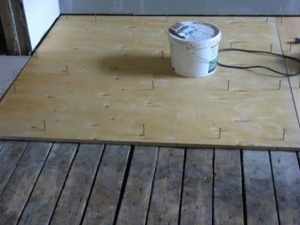 Wood flooring should be leveled with plywood 12-15 mm thick. Fasteners must be hidden, and the gaps must be filled with acrylic, then impregnated with primer for greater strength.