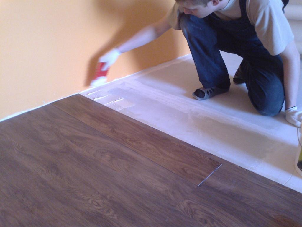 Be sure to leave a distance of 5-6 mm between the tile and the wall. This is necessary because at higher temperatures, for example, in summer, the material expands. In order to avoid waves or bubbles it is better to leave a place in advance.Such a gap can be hidden by installing baseboards around the perimeter of the room.