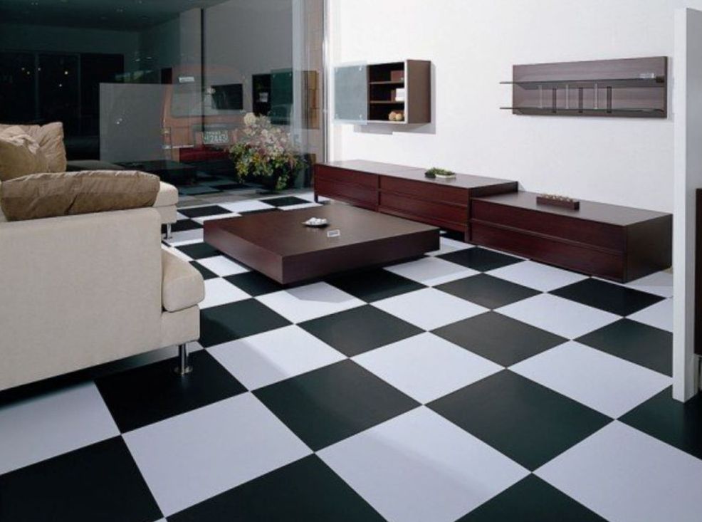 The main principle of installation will not allow you to deviate from the desired direction and cover the floor unevenly. There are two options for this method: lay PVC tiles along the walls of the room or diagonally.