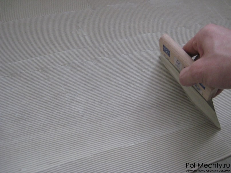 When laid two rows, you should take the bar and hold them across the entire width. So the air finally out of the cover. For greater reliability, you can use a rubber mallet, knocking the floor with it.