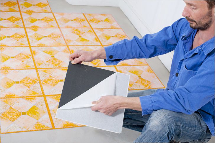 Vinyl tiles can be laid on the floor of any material: fiberboard, plywood, OBP, GFL, concrete.