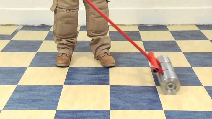 For laying self-adhesive tiles tools need quite a bit: a roller, a ruler and a stationery knife.