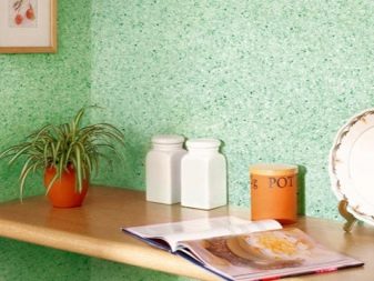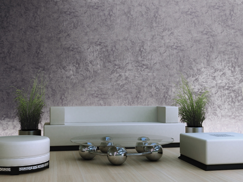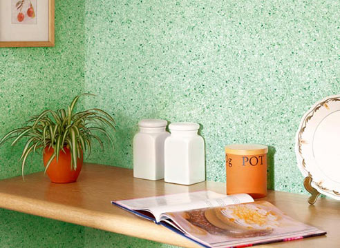 - The main ones are flock coatingscontaining acrylic microparticles. They give the treated surface different shades depending on the angle of location or lighting. The application process requires the primary application of a water-based paint, after drying of which a flock coating is applied with a spray gun or a special gun, after 12 hours an acrylic varnish is applied, which will be very convenient in the future for wet cleaning.