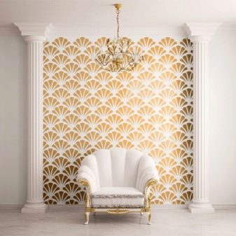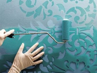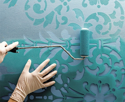 - Stencils of various sizes and drawings. For smaller stencils, it remains to use only a brush, not a roller. Even after using a stencil pattern, you can draw details. The important point is to remove the stencil before drying in order to avoid tearing it or sticking to the wall.