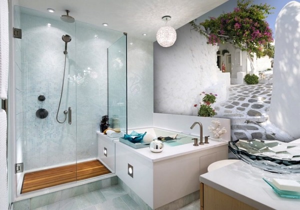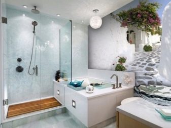 The same special case is the decor of the bathroom.Here, the absolute requirement for coatings is moisture resistance. The choice should fall on moisture-resistant paints, which are produced by the manufacturer under a different label that is different from the usual paint. As an unusual solution, you can apply a 3D image that has become popular relatively recently.