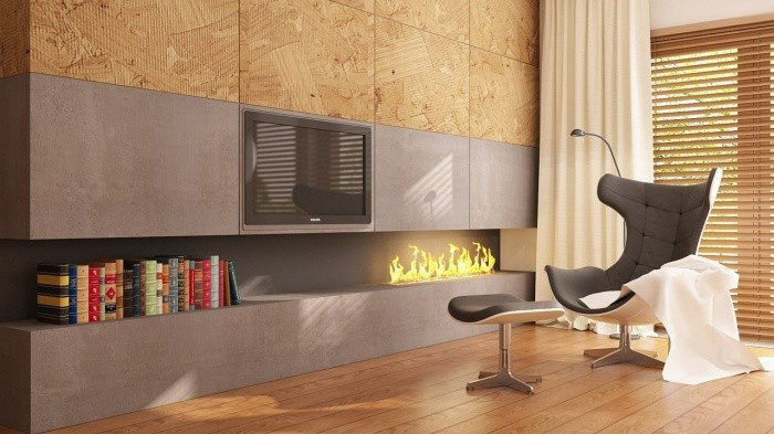 - Using RSD, that is, oriented strand board can be a good alternative to the use of wood in the design of the room. But it should be borne in mind that it can only be used in rooms with low humidity, since this material consists of wooden shavings. The main advantage is its not high price.