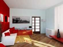 - Red. A less obvious option is a combination of turquoise and red. Although they seem completely incompatible at first glance, but if you find the right shades, you will get a bright and unusual interior.