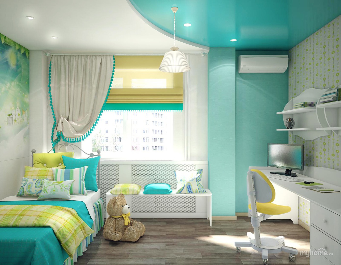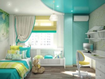 - Yellow. A bright sunny combination of turquoise and yellow is also suitable for decoration of children's or youth rooms. Unlike the previous version, working with these two colors can be much bolder and use more yellow.