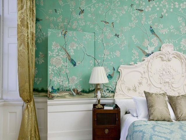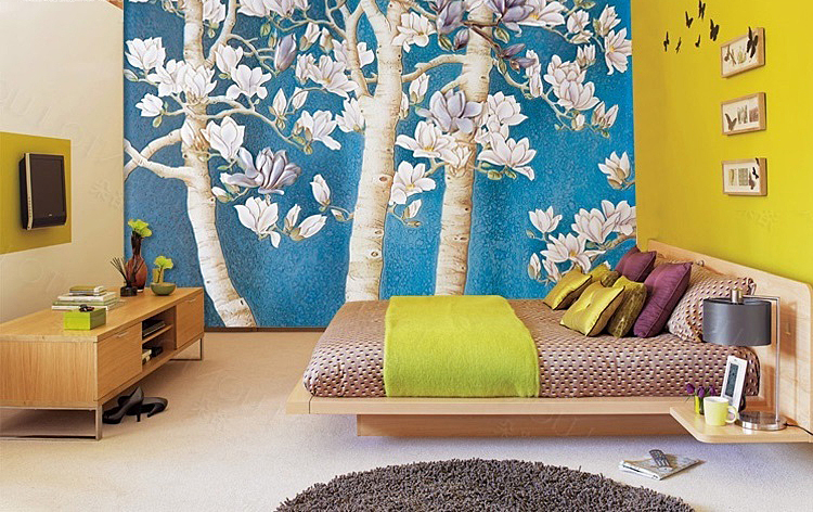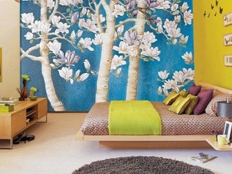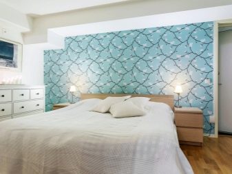 - Delicate flowers. For a delicate romantic interior fit light turquoise wallpaper in flower.It can be wall coverings with orchids or delicate wallpaper, which shows the blossoming sakura. Such wallpapers look equally good in the living room in the oriental style, and in a cozy bedroom.