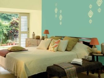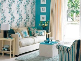 - Pastel shades. Additional pastel colors look advantageous against the turquoise background. This color can be easily combined with plain vanilla, cream or coffee wallpaper. This combination looks calm and adjusts to a peaceful way.