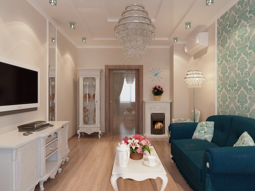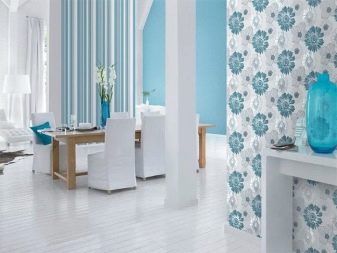 Pay attention to the texture of the new wallpaper. The simplest and cheapest paper wallpapers are cheap, but not suitable for rooms in which there are no ideal conditions. They can be glued to the hall or hallway.But for the living room is better to find something more elegant and elegant, for example, non-woven or velvet wallpaper of a delicate turquoise color.