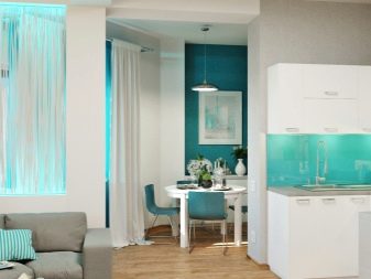 As you can see, the turquoise color, despite its ambiguity, is popular and well suited for decoration and small kitchens, and cozy bedrooms. Using this multifaceted color, you can achieve very different effects and surprise even those who are well versed in design issues.