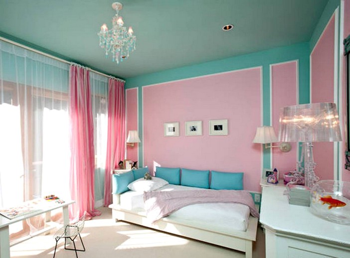 - Pink. This color is considered the majority of girls. Therefore, it is used most often in the design of children's rooms or rooms for romantically-minded girls. But if you combine pink with turquoise, it will no longer seem so sweet. The shade of blue definitely refreshes the interior.