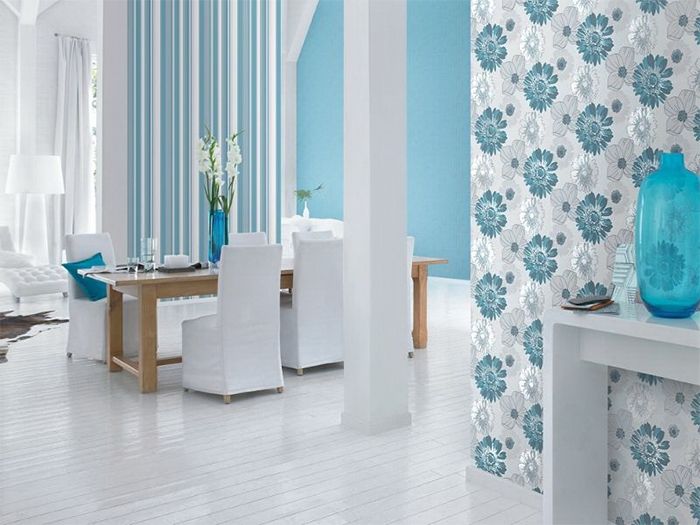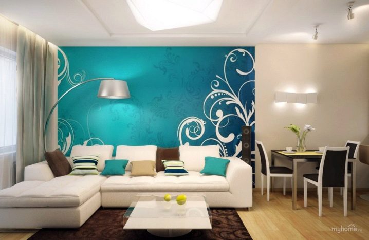 The choice of wallpaper is a difficult task. After all, you need to take into account not only whether you like this color or not, but also how organic and stylish the combination of turquoise wall coverings with furniture and decorative details are placed in the room.
