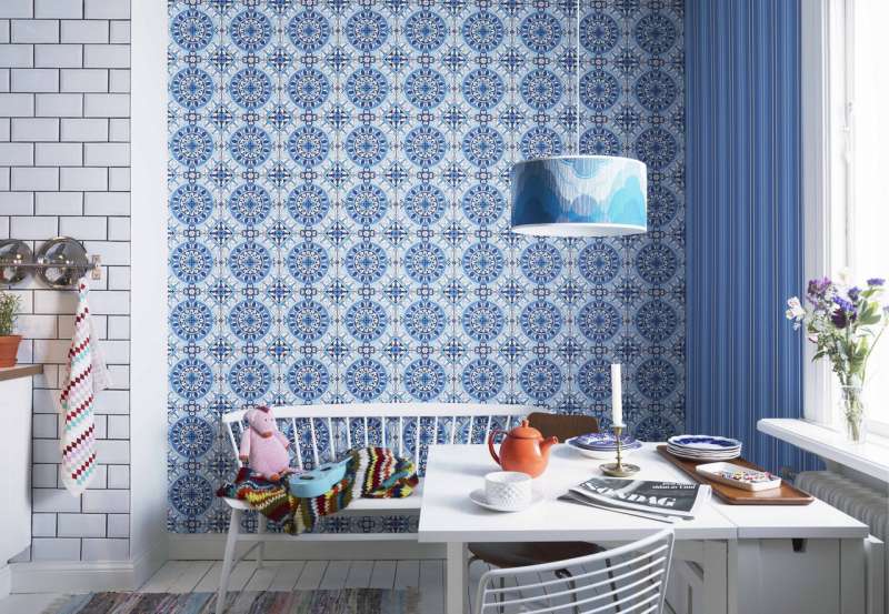 In the kitchen or in the bathroom, wall coverings that are resistant to high humidity will be useful. It can be washable wallpaper or neat tile of turquoise color.