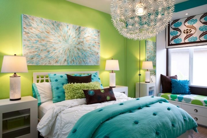 - Light green This shade is beneficial because it is very natural and refined. Delicate light green walls go well with turquoise and create an atmosphere of spring lightness in the room.