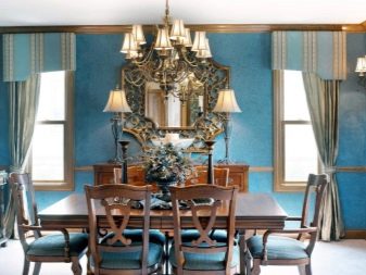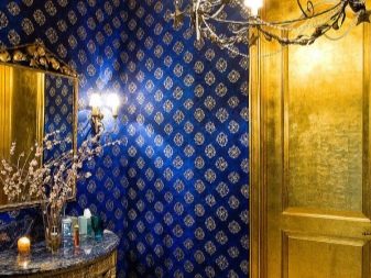 - Blue color in the interior soothes, relaxes, fills the room with coolness. Blue wallpapers are in harmony with any natural shades: beige-brown furniture, bright yellow textiles, accessories of the color of greenery and foliage.