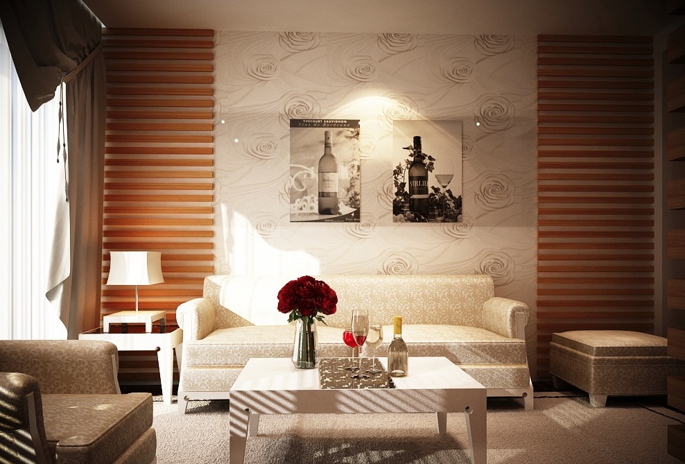 - Corrugated - relatively new wall paintings in the domestic market. The top layer of the material is undulating and curly folds, so the surface that is covered with wallpaper looks very original.