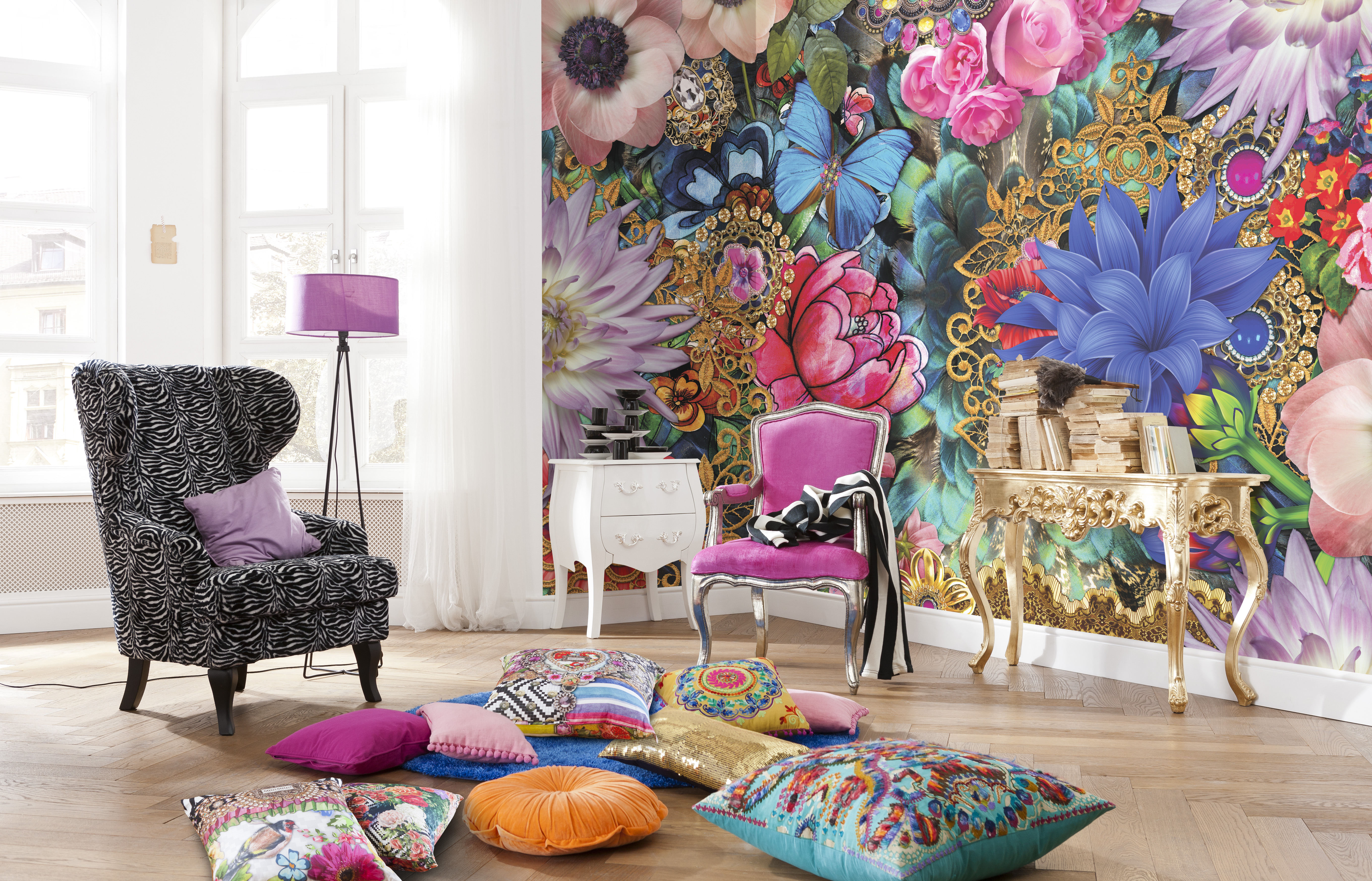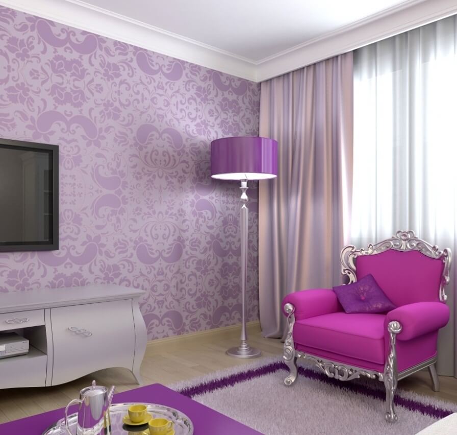 - Purple and Lilac notes give the room mystery and significance.Shades are appropriate in luxurious interiors.
