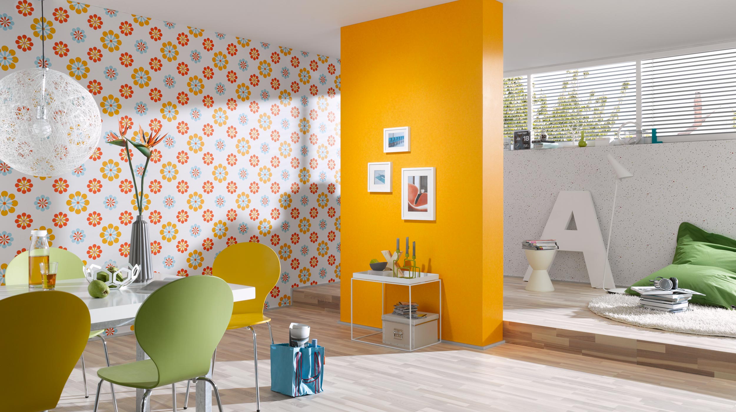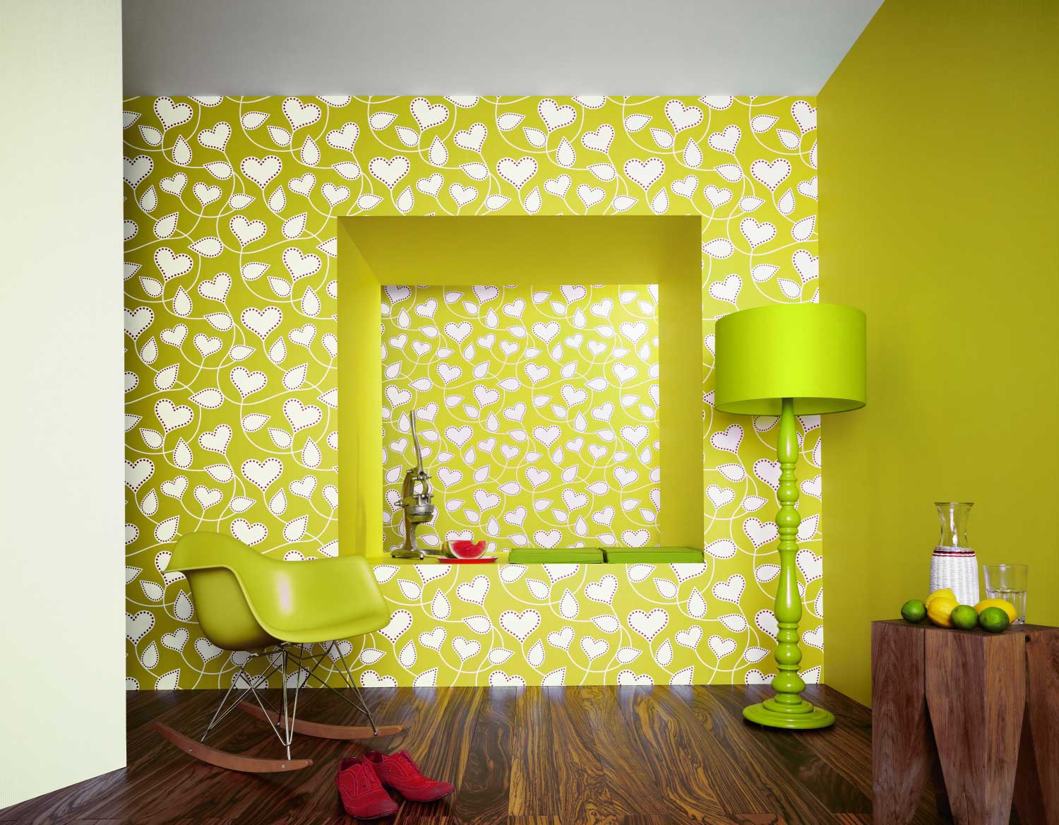 - Solar paints are chosen by those who want to get a warm cozy design. Yellow shades in the interior personify life, energy, activity. They have a positive effect on the psyche, relieve fatigue and stress. They are especially successful for rooms with windows facing north.