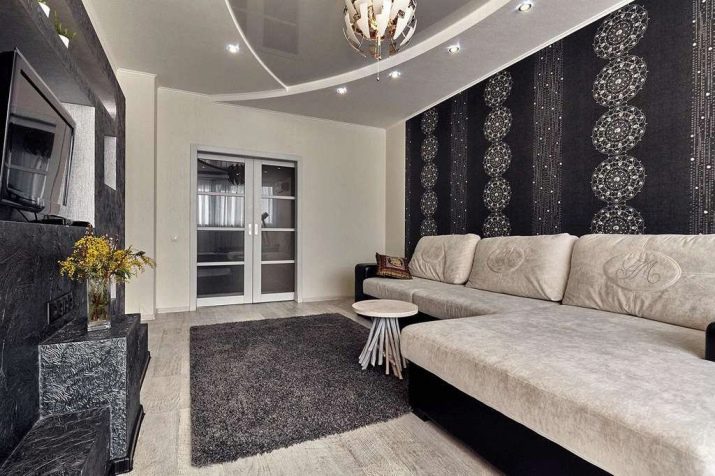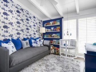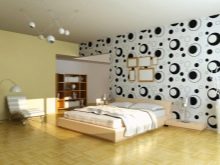 No less bold decision than the combination of wallpapers with different prints. At its core, this principle contains the possibility of a clear separation of zones.You can combine the canvas with the same print, but in different colors or bright colors with neutral ones, these are quite interesting ways of combination.