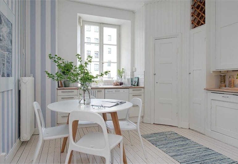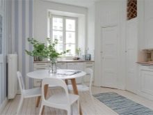 The choice of wallpaper for the design of the kitchen falls on the variety of neutral tones, if not white. They can be combined with prints (the exception is floral wallpaper, often it looks out of place here).