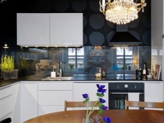 If the cloth is glued in the kitchen in the cabinet area, it is recommended to buy a glass apron for vinyl wallpaper that can protect the surface from dirt, temperatures and wear.