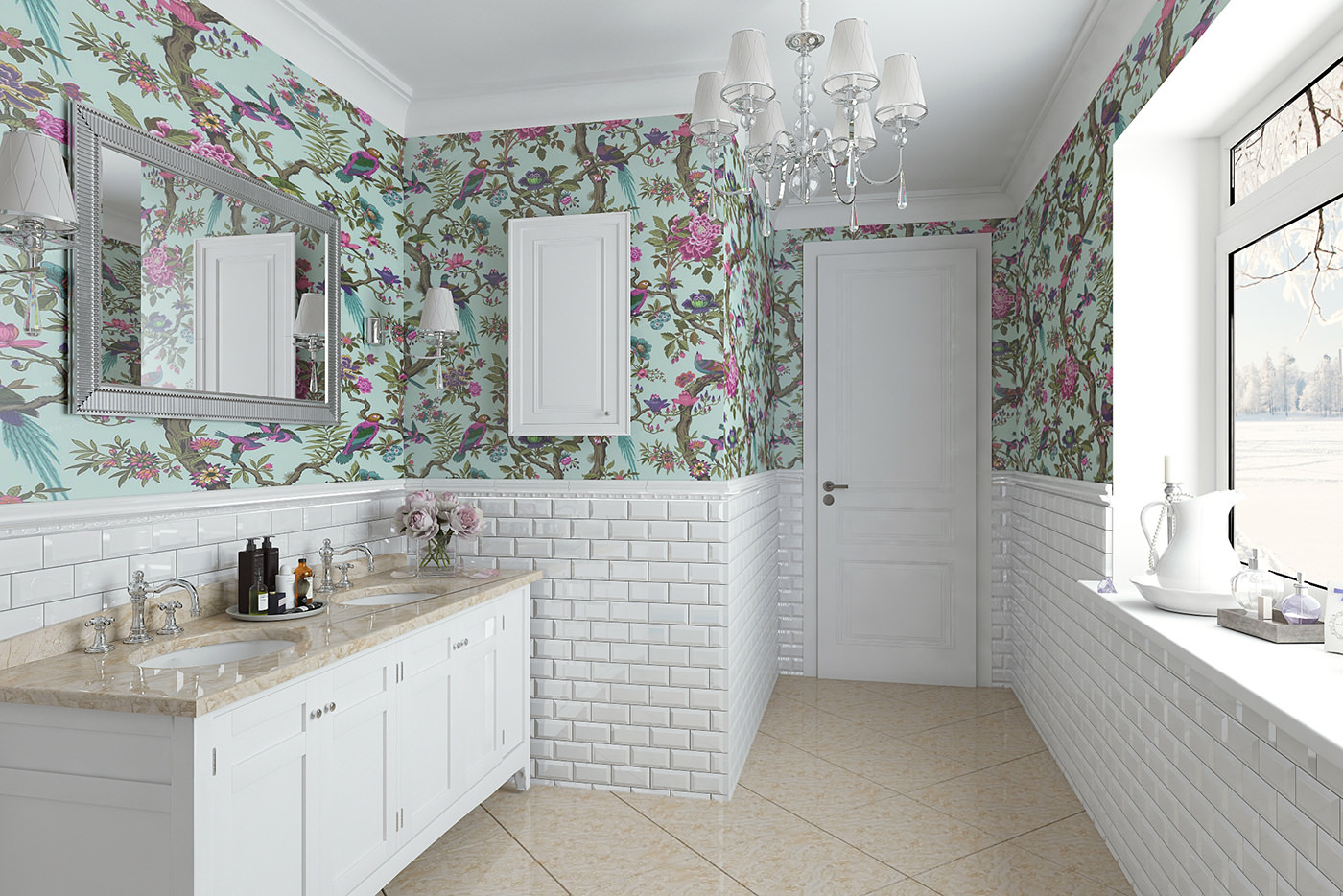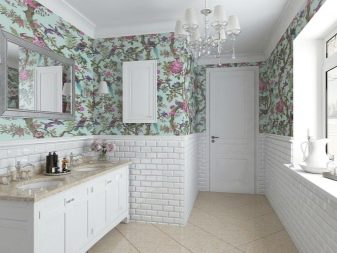 Care must be taken when choosing wallpaper in the bathroom and kitchen. Usually, in such rooms you should not use the usual types of paintings. Vinyl washable wallpapers are the best for the kitchen and bathroom. They easily withstand regular exposure to moisture and are easy to clean, they are not afraid of spots and stains.