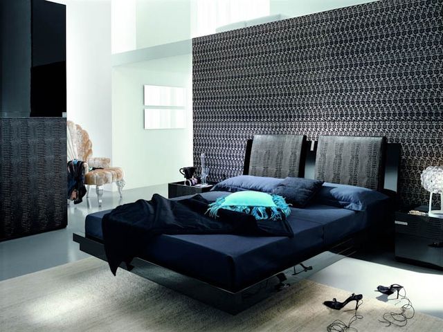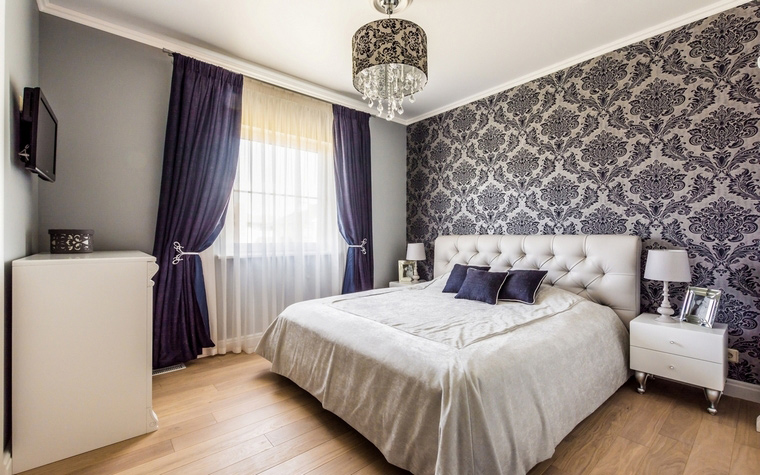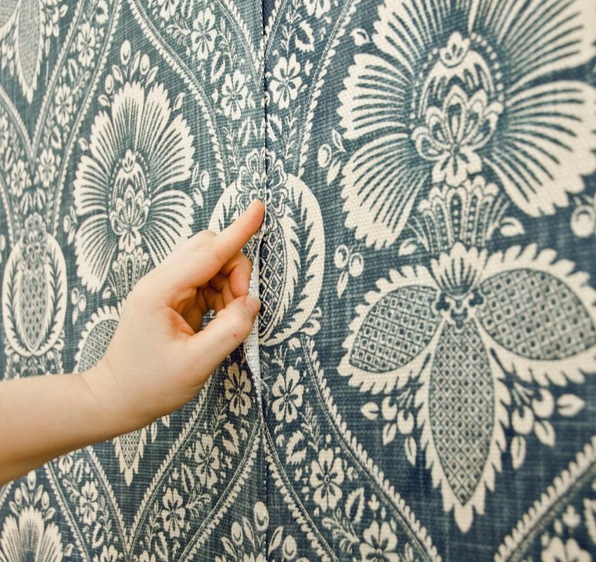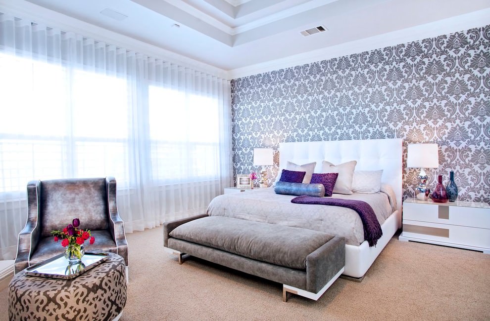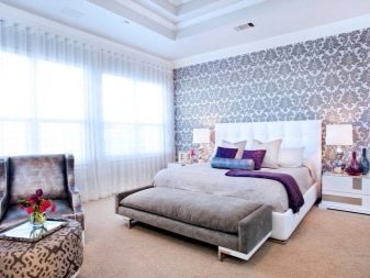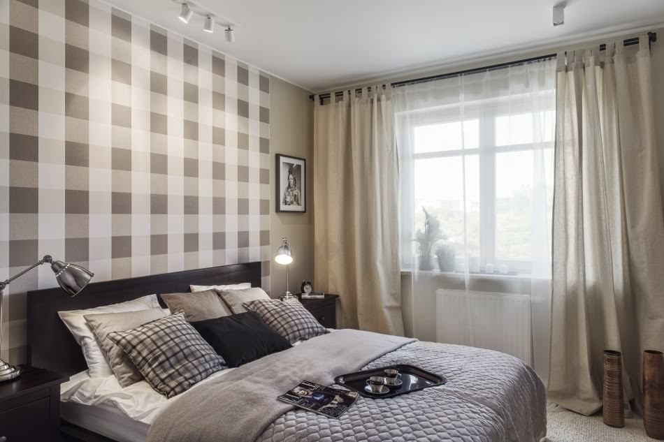 Using a combination of plain cloths and wallpapers with a contrasting texture (print), you can visually highlight or isolate any area in the room, if you stick a contrasting canvas. This method gives the space a clear organization.