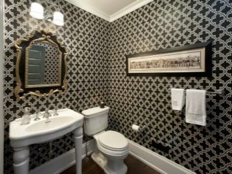 Meeting in the bathroom wallpaper is truly a rarity. But even here, these paintings take root perfectly, if they have the necessary moisture-resistant properties. The color scheme and style of the bathroom does not have any frames, the most important thing is the feeling of comfort of the household.