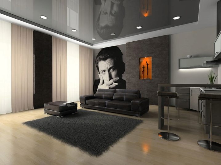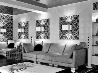 Canvases with imitation of tree bark, stone surfaces, leather especially attract buyers. Relevant species with imitation brick or concrete. Modern style involves the use of matte or glossy surfaces on the walls. As for the print, graphics, abstraction and geometry in monochrome colors are welcome, but only as an accent.