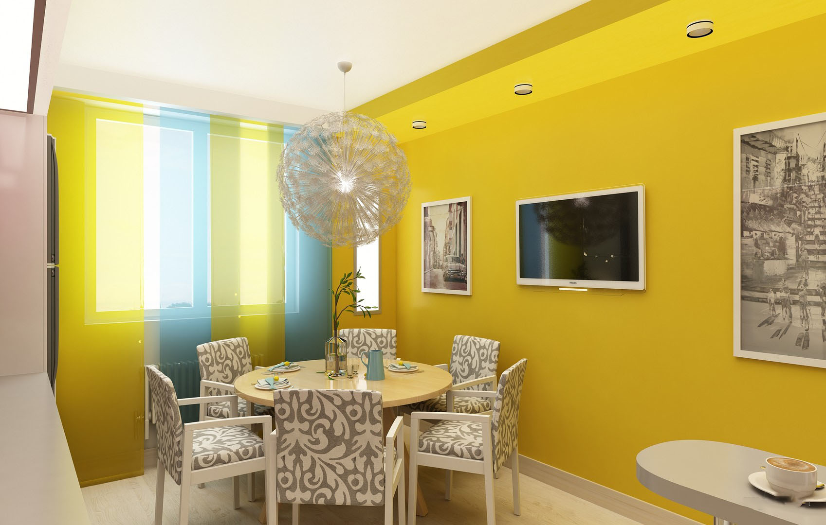 The color scheme of the kitchen area should stimulate the appetite, energize and invigorate, in this case the professional is yellow. But the neutral colors in the kitchen will not be superfluous. Gray, white or beige colors also attract positive energy. Blue shades stimulate the brain, it is better to avoid them in the bedroom, living room, but the children's room, office or work area will contribute to the development in the design in blue.