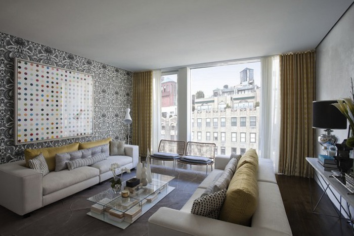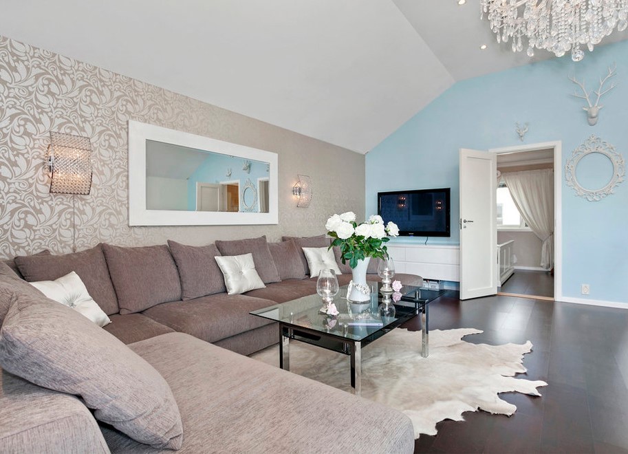 Most often the wallpaper in the living room are neutral and calm tones. This allows you to relax and fits all households.