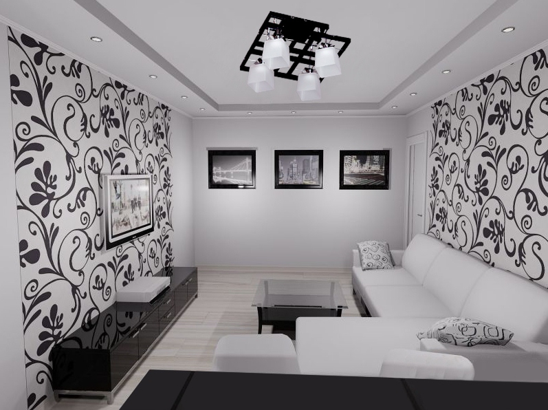 If the ceiling in the room is low, you can not glue on the walls dark wallpaper with a volume print. It is appropriate to light canvases with small patterns that visually eliminate the disadvantage of the room. For small premises (including one-room apartments in the Khrushchev), it is better to choose light wallpaper with a monochrome and small print, reflective elements. It is not recommended to use the ceiling baguette.